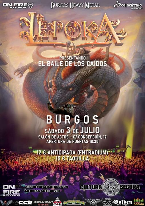 Para el segundo fin de semana, y dentro del ciclo de conciertos, “La cultura heavy es segura”, Burgos Heavy Metal presenta a Lepoka, grupo de Folk-Metal originario de Castellón de la Plana, que se formó en 2009 y cuenta con 4 discos. Han girado por España incansablemente e incluso han visitado tierras mexicanas en 2019. Son uno de los grupos más reconocidos en su estilo y cuentan con una buena base de fans que disfrutan de su propuesta divertida y bailable.